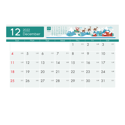 | 本文 | マットコート135kg 片面フルカラー印刷×14枚 (表紙+年間カレンダー+12ヶ月) | ケース | 材質:ポリスチレン製 |