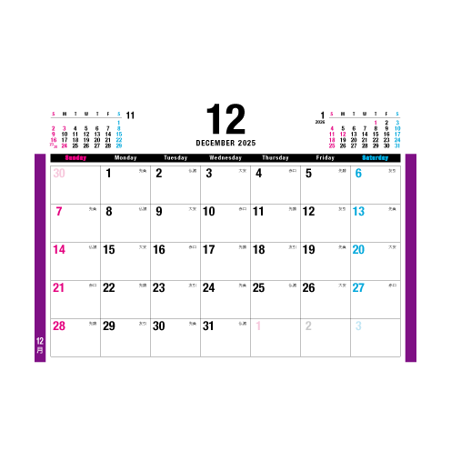 ※先頭の品番は、年号によって毎年変わります。(カレンダーは新しい年号に差し変わります。)